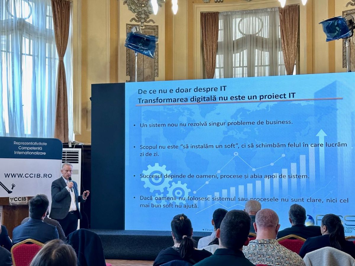 În opinia lui Ovidiu Drăghici, director general la FSS Global, transformarea digitală nu este un proiect IT. „Scopul nu este să instalăm un software, ci să schimbăm felul în care lucrăm zi de zi. Un sistem nou nu rezolvă singur problemele dintr-o companie. Succesul depinde de oameni, de procese și abia apoi de sistem. Dacă oamenii nu folosesc sistemul sau procesele nu sunt clare, nici cel mai bun software nu ajută”, a declarat expertul. În context a subliniat importanța elaborării unui plan de lucru și necesitatea acordării importanței cuvenite informațiilor introduse în sistemul nou și alcătuirii echipei implicate în procesul de digitalizare.